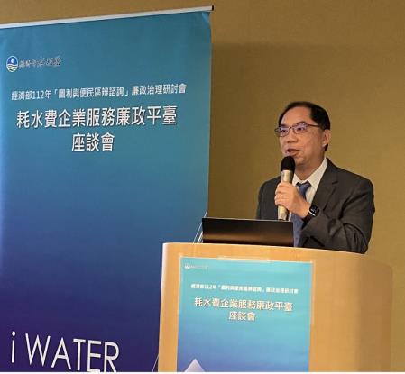 經濟部水利署18日在張榮發國際會議中心舉辦「112年『圖利與便民區辨諮詢』廉政治理研討會-耗水費企業服務廉政平臺座談會」,吸引近百家企業及耗水費查驗機構代表參與,活動邀請法務部廉政署副署長沈鳳樑,並由國立陽明交通大學林志潔教授主講反貪腐與企業的誠信經營,以及國泰金控張發祥風控長從標竿學習的角度分享企業如何落實誠信經營從而創造永續價值鏈。