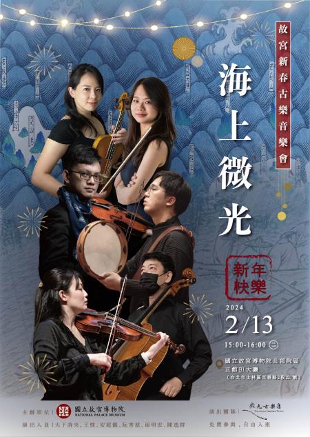 故宮北院大年初四2月13日下午於B1大廳,舉辦「《海上微光》新年古樂音樂會」,搭配「無界之涯—從海出發探索十六世紀東西文化交流」當期特展,邀請新生代古樂團《微光古樂集》演奏歐洲巴洛克古樂,以音符交織的美妙樂章探索大航海時代。