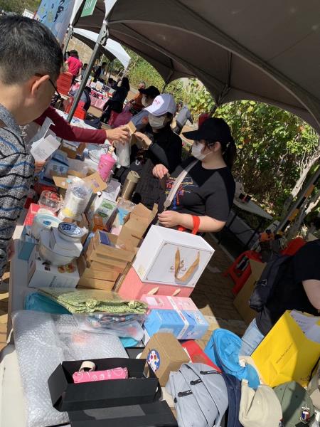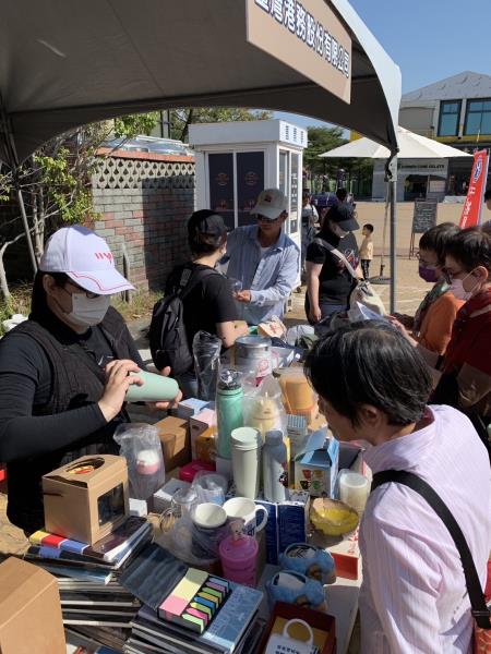民眾陸續至本公司攤位尋寶,排隊人潮絡繹不絕,熱情踴躍的挑選,不斷地說:「我要這個包包跟那個盤子。」所挑選義賣商品緊抓在手,深怕一放回攤位上,就被其他人挑選走,現場熱鬧非凡,民眾雙手大包小包提著滿滿戰利品,臉上洋溢著滿足的笑容,直呼「賺到了!」