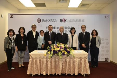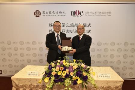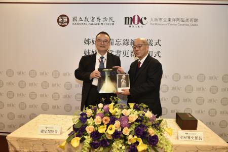 23日國立故宮博物院與日本大阪市立東洋陶磁美術館續簽姊妹館,由故宮蕭宗煌院長、東洋陶磁美術館守屋雅史館長代表簽約,故宮黃永泰副院長、余佩瑾副院長、徐孝德主任秘書、東洋陶磁美術館小林仁學藝課長、法國吉美國立亞洲藝術博物館曹慧中研究員等蒞臨觀禮,宣布雙方延續姊妹館友好情誼,深化典藏、展覽、研究等各領域合作,為臺日文化交流再添新篇章。