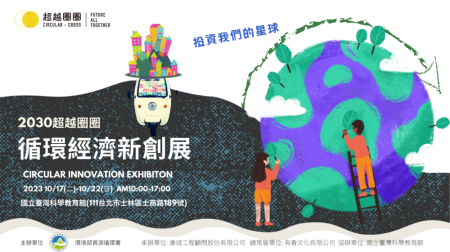 為使資源循環的理念及作法更貼近民眾日常生活,環境部資源循環署於10月17日(星期二)至10月22日(星期日)連續6天,在國立臺灣科學教育館舉辦第4屆「2030超越圈圈-循環經濟新創展」,包括循環共享、循環模式設計、循環材料應用、循環文創等主題,歡迎企業、民眾、學校等蒞臨免費參觀,用行動來共同體驗循環經濟的生活。
