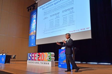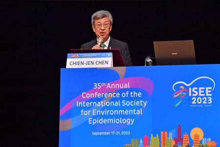 行政院長陳建仁18日前往高雄展覽館出席「2023年第35屆國際環境流行病學學會年會」時表示,本屆大會主題為「星球衛生(Connecting the East and the West, One Health in One Planet)」,共有來自65國、約1,500人參與,針對環境污染對健康的影響分享知識及見解,並提供新的概念與方法,有助我國政府對於環境健康領域的重視與了解。院長也以「Epidemiology and Public Health Policy Decision(流行病學及公共衛生政策決策)」為題發表英文專題演講,分享政府部門如何透過完善公共衛生政策,防治烏腳病、肝癌、胃癌、SARS、COVID-19等流行疾病。
