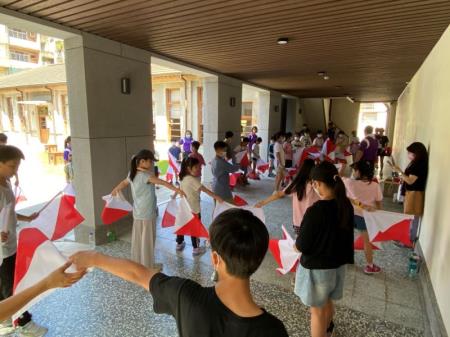 而最熱鬧的旗海飄飄課程,則是以台語教授如何使用電碼本收發中文數碼旗語操作每分鐘十字以上的簡單通訊,兩小隊帶開分據走廊的兩頭、揮著雙旗,要完成猜出對方打出旗語的任務。壓軸的「搭帳篷」,老師帶大家在中庭教導蒙古包的搭組技巧、讓每小隊可以4人一組的動手搭帳逢,整個活動過程中實踐maker精神、激發團隊創意思考以解決活動中所遇到的問題及困難,並加強小組團體合作及其他各類技能用途,讓參與者在學習成果學會幼童軍活動技巧實務,亦使台語深度融入國小學童的學習活動中。對於未接觸過童軍活動的學童們來說,是新鮮有趣的一次經驗。