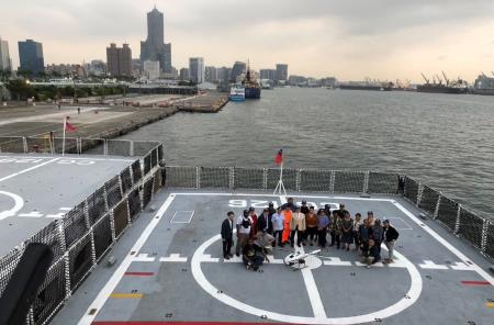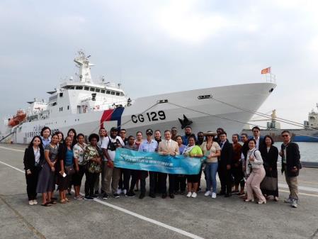 會後訪團赴海巡署南部地區機動海巡隊台南艦參訪,海巡署長期派遣巡護艦執行至中西太平洋公海漁業巡護任務,台南艦數次藉巡護期間赴太平洋島國進行海巡外交敦訪,學員訪團登艦參訪份外親切。