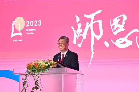 教師節即將到來,行政院長陳建仁25日陪同蔡英文總統出席「112年師鐸獎、教育奉獻獎及資深優良教師表揚大會」時表示,今(112)年榮獲「師鐸獎」的豐佳燕及邱巧鈺兩位教師分別在特殊教育和輔導學生追尋自我、培養專長與興趣等方面貢獻卓著,堪為表率;另外,20位「教育奉獻獎」得獎老師更是退而不休,積極從事教學與輔導的志願服務工作。院長期許所有教師能夠及時提供孩子協助,如蠟燭般照亮每一位孩子發展的道路,帶領及引導他們走向更好的未來。