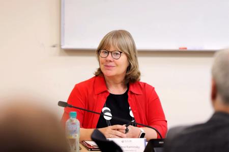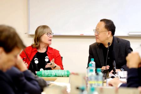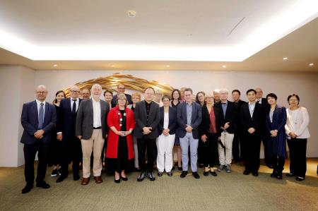 「轉型正義基金會訪團」由執行長卡明斯基(Dr. Anna Kaminsky)率團、基金會主席梅克(Mr. Markus Meckel)、副主席顏森(Prof. Dr. Ralph Jessen)、聯邦檔案局史塔西檔案館副主席蒂策(Ms. Alexandra Titze)、基金會公共歷史部門主任庫德(Dr. Sabine Kuder)一行共21人出席今日訪問。