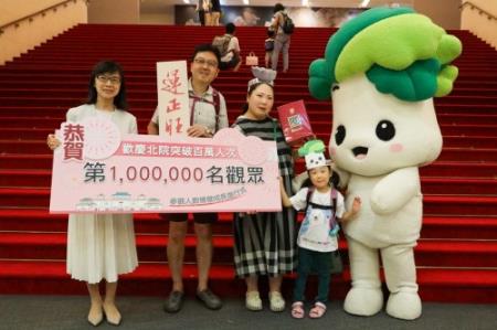 繼今年4月29日突破疫情以來最低參觀人次41萬6,836人,國立故宮博物院北部院區9月20日突破百萬參觀人次,故宮余佩瑾副院長與吉祥物小翠歡喜迎接「故宮北院百萬之星」,致贈第100萬及前後5名幸運觀眾紀念禮品。第100萬名幸運觀眾是來自日本的小澤夫妻與女兒小澤凜凜子。小澤先生表示,自己是第三次來到故宮,太太、女兒則是第一次來,對於成為「百萬之星」感到相當開心,此行最期待看到人氣國寶翠玉白菜、肉形石及仕女俑,也感謝故宮精心安排。