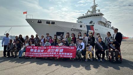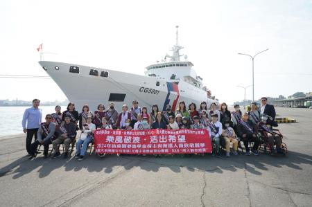 管主委說,抗癌小鬥士們無時無刻承受著癌細胞的攻擊,仍堅持釋放身體最大的能量;海巡同仁頂著一波波翻騰的海浪,仍不放棄海上等待救援的生命,兩者同樣都是「我在這裡不放棄」的信念實踐,都令人動容,也都值得國人給予最崇高的尊敬。