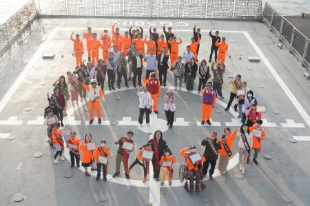獲「抗癌圓夢助學金」的十位多才多藝抗癌小鬥士,來自不同學校、不同年齡層,包括小畫家、歌唱天使、小舞者、小醫師等。周大觀文教基金會去年向海洋委員會提出希望在海巡艦上授獎向海巡致敬的想法,管碧玲主委十分重視,即請海巡署在巡護任務之餘,讓抗癌學童一圓登艦夢想。