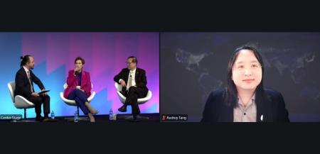 數位發展部長唐鳳應邀於臺灣時間7日晚間線上出席於美國華府舉辦的「促進國家競爭力AI博覽會」(AI Expo for National Competitiveness),於「全球利用AI與科技提升競爭力之方法」場次擔任與談人,與新加坡通訊及新聞部長楊莉明(Josephine Teo)及菲律賓資訊和通信技術部部長Ivan John E. Uy分享臺灣經驗,探討如何善用AI與新興科技,共同構築可信賴的AI與數位環境。