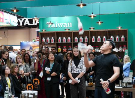 臺灣館內每日安排茶藝師介紹臺灣茶文化、帶領英國業者品茗,亦邀請調酒師設計臺灣茶與水果風味酒譜,以Omar威士忌為基底,將四季春茶及紅心芭樂入酒,用臺式風味抓住當地業者的味蕾;同步亦規劃客家油紙傘彩繪、春聯絹印等文化體驗,讓國際業者更能感受臺灣的文化底蘊及節日氛圍,認識寶島精采多元的文化特色;11月6日臺灣館辦理Happy Hour活動,邀請近百位業者及媒體前來臺灣館品好茶、喝好酒,認識臺灣觀光新亮點。
