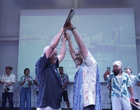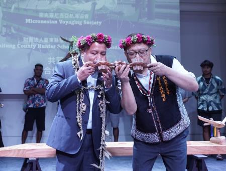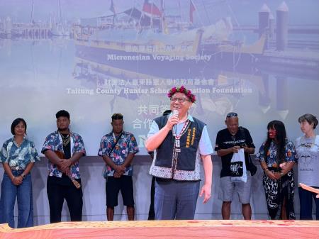 20日下午杜張梅莊Adralriw Abaliusu副主委與饒慶鈴縣長共同出席見證,密克羅尼西亞航海協會 Micronesian Voyaging Society(MVS)與臺東縣獵人學校教育基金會正式簽署合作備忘錄(MOU),為雙邊原住民族交流再添新篇章,透過航海分享、部落交流與教育推廣,讓更多人認識南島航海傳統與太平洋島嶼間的文化連結。