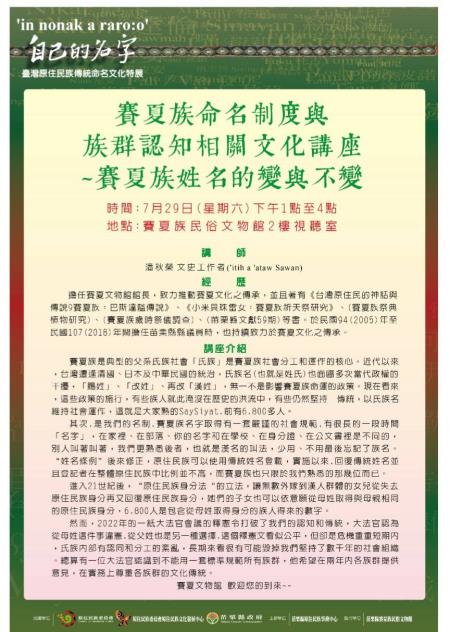 「賽夏族命名制度及族群認知-賽夏族姓名的變與不變」相關文化議題,
