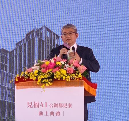 內政部次長花敬群23日與行政院副院長鄭文燦共同出席臺北市信義區「兒福A1都市更新案」動土典禮。花敬群表示,這一案是國家住宅及都市更新中心(以下簡稱國家住都中心)公辦都更重要指標案件,此次,集結公私力量,透過引進民間投資挹注金額共計約47億元,將於116年底完成。國家住都中心可分得300戶全齡住宅,也將規劃釋出6成戶數優先讓65歲以上長者的家庭入住,同時建設「醫療」、「高齡照護」等服務設施,讓高齡者及其家庭都可以獲得政府更完善的支持與照顧。