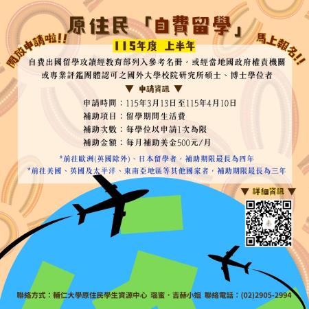 聯絡方式:輔仁大學原住民學生資源中心 瑙蜜•吉赫小姐