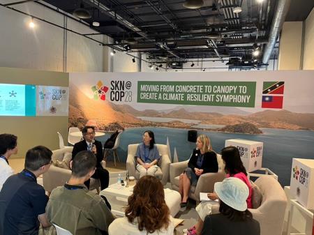 氣象署同時也參與12月10日於我國友邦-聖克里斯多福及尼維斯國家館展館舉辦的「氣候金融推進氣候行動」主題活動,分享我國如何透過該署科學模式及資料,協助產業進行氣候風險評估及應用。業界專家及與會人士對氣候金融如何推動氣候行動進行充分討論及意見交換,引起熱烈迴響。