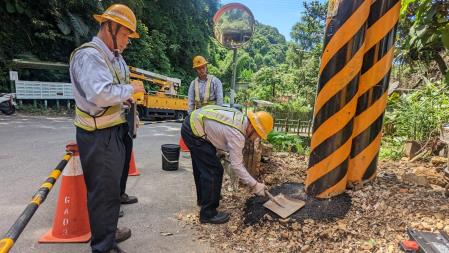 台電將隨時掌握各地搶修狀況,必要時啟動跨區處支援,動員最大能量投入搶修,以縮短復電時間。台電強調,針對颱風造成的停電事故,將積極搶修儘快復電,復電程序將採「供電樞紐變電所→主幹線→分歧線」的原則,並採先恢復捷運、火車、自來水及電話通信等公用設施,然後一般用戶的順序,安排人員搶修。不過搶修進度仍會受到停電範圍、交通路況、風雨情況等影響,遇到停電狀況請民眾多多體諒。