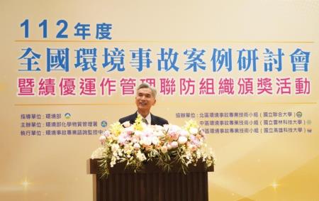 隨著臺灣在科技與化學工業的蓬勃發展,常見使用化學品高達6萬多種,稍有操作不慎就會造成化學災害事故。近年來化學災害事故多屬複合型災害,其中國內每年約有400件以上的環境事故;為增進政府防救災單位與毒性及關注化學物質運作業者環境事故預防管理與應變能力,環境部於11月14日至15日辦理「112年度全國環境事故案例研討會暨績優運作管理聯防組織頒獎活動」,由薛富盛部長親自主持,國內產官學研等專業人士參加,除挑選10則環境事故案例應變經驗分享外,並特別邀請日本海上災害防止中心(MDPC)以視訊方式分享陸路聯防服務業務建置、推動與執行實例防災經驗供業者借鏡,與會人數逾500人。