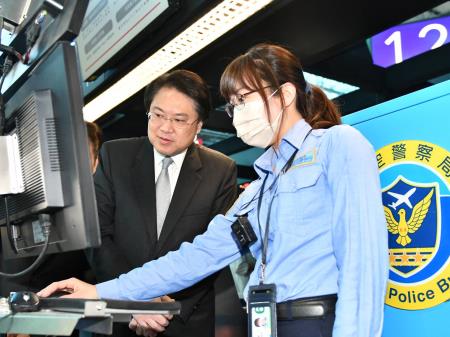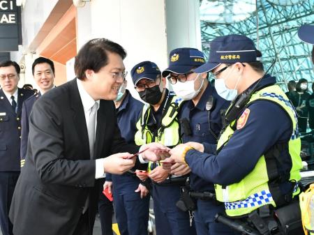 林右昌強調,為使春節連假國人都能平安過好年,駐守國門的第一線航警人員及移民官,將落實證照查驗及安檢等各項作業,確保國境安全。