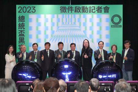 「2023總統盃黑客松徵件啟動記者會」於25日假三創生活園區CLAPPER THEATER盛大舉辦,由行政院鄭文燦副院長、總統府張惇涵副秘書長、立法院鄭輝彬處長、司法院賴武志處長、考試院徐嘉臨參事、監察院汪林玲處長、數位發展部唐鳳部長、交通部王國材部長、陳正然無任所大使、國科會科技辦公室沈弘俊執行秘書共同宣布2023總統盃黑客松徵件正式啟動,號召全國黑客認領公民心願,提出解方,並由政府落實,共同為零碳轉型努力!
