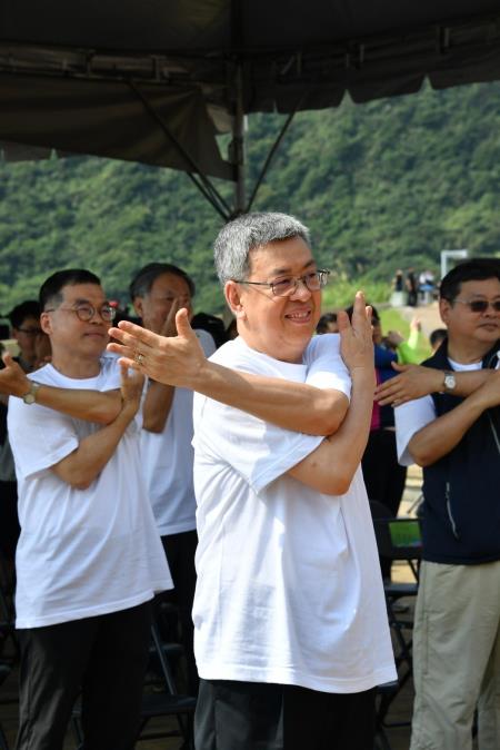 致詞結束後,蔡總統與陳院長等現場貴賓一同進行暖身操,並由總統及院長親自領騎一段路程,以行動響應世界自行車日。接著陳院長、李孟諺秘書長、林子倫發言人、交通部長王國材等一行續騎至萬里國聖埔,並於騎乘結束後,觀看透過「環騎圓夢 APP」騎乘軌跡訊號連接成臺灣形狀的環臺騎遊畫面。