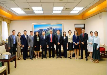 在諮商會議召開前,代表團及駐臺北越南經濟文化辦事處武代表進勇先拜會本部,由黃常務次長謀信代表蔡部長接見,其肯定臺越民事司法互助多年來之成果,武代表亦對於我國中央及地方機關在各方面對於駐臺北越南經濟文化辦事處之協助,以及本部積極執行協定,保障越南人民權益各情,表達感謝之意。