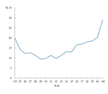 年齡是影響人工生殖成功率的因素之一,根據110年人工生殖施行結果分析報告顯示,接受人工生殖之受術妻(接受手術的太太)平均年齡逐年升高,101年為36歲,110年增至37.9歲;受術夫(接受手術的先生)平均年齡則從101年的38.1歲上升至110年39.6歲。人工生殖植入胚胎懷孕後,自然流產率在34歲以後隨年齡增加而增加, 40歲以上者的自然流產率高達28.9%。比較不同年齡懷孕成功率,34歲以下使用配偶精卵之植入週期懷孕率為54.9%,40歲以後則下降至23.7%;植入週期活產率34歲以下為44.6%,40歲以後則降低到只有13.2%。