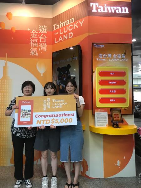 行政院副院長鄭文燦、交通部部長王國材皆親自到場歡迎,並致贈花束及喔熊組長主題伴手禮給第400萬幸運旅客來自韓國濟州的金睿元小姐,金小姐是與母親及妹妹同遊臺灣,其表示「這次第一次來臺灣,與家人來臺灣玩,很高興自己成為2023年第400萬名旅客!下次還會再來」,金小姐這次來臺行程四天三夜,預計到訪西門町、九份等著名景點,非常期待體驗臺灣的美食及美景,希望可以藉此次旅遊機會好好享受臺灣的熱情與魅力。金小姐一家人也登記參加觀光局「遊台灣金福氣—Taiwan the Lucky Land」抽獎活動,三人皆幸運抽中消費金5,000元。