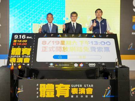 教育部體育署15日舉辦「2023 SUPER STAR體育表演會」啟動記者會,揭曉今(112)年9月16日體育表演會的節目內容,將以「破框力」為主軸,體育署房瑞文副署長表示,今年將有12個運動種類攜手國際團隊共襄盛舉,共同打造一場新穎且磅礡的演出。本次舞臺設計創新突破,外型猶如蓄勢待發的盛開花朵,並結合高空技術機關,增加視覺震撼,搭配頂尖團隊跨界聯合演出,將再次在臺北小巨蛋掀起熱潮。記者會也帶大家搶先觀賞即將成為2024巴黎奧運競賽項目的霹靂舞演出,揭開體育表演會序幕,象徵今年體育表演會秉持蛻變求新、銳不可擋的精神,將帶給觀眾前所未有的精彩體驗。