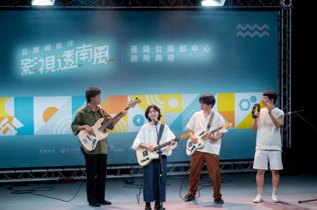 陳院長到場後,陸續觀賞高雄在地的淺堤樂團演唱「青春咱的夢」主題曲、公視台語台南部中心成立宗旨影片、阿雞GLOJ演唱台語饒舌歌「南洄少年家」等表演,並於致詞結束後,與貴賓進行啟用儀式,將顏料水倒入水箱,「公廣相放伴,影視透南風」字樣隨水位升高逐漸浮現眼前,隨後一行人並手持「台語台南部中心」手板合影留念。