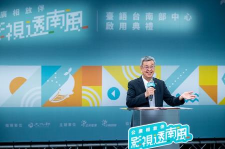 陳院長指出,身為高雄子弟,他很高興看到「公視台語台南部中心」今日在高雄啟用,未來將能在當地拍攝製作相關節目,持續豐沛公視台語節目的品質,並透過介紹及推廣臺灣在地人文、景觀、文化、藝術、歷史等面向,讓全世界看見臺灣人民努力打拚成果、臺灣的進步發展與文化軟實力,並成為世界的典範,行政院也會持續支持該中心的發展。此外,陳院長也肯定陳其邁市長認真推動市政發展,讓高雄蛻變成為一座非常進步的城市。