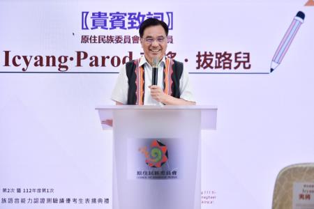 原民會夷將Icyang主委於24日親自接見並獎勵通過原住民族語言能力認證測驗成績優異考生,除獎勵考生的族語認證表現,並聆聽考生用族語分享學習族語的心得。