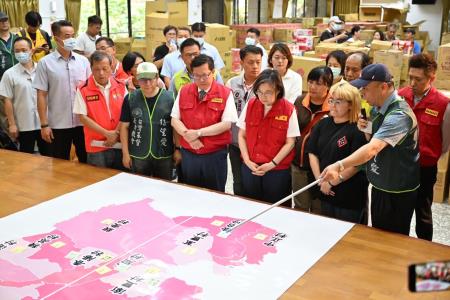 此行,鄭副院長先陪同蔡英文總統前往埔里鎮臺灣基督長老教會謝緯紀念營地之物資集中轉運站,瞭解目前賑災民生物資整備情形,鄭副院長並親手協助整理物資。隨後前往仁愛鄉台14線71K視導聖本篤加油站對面公路總局進駐點,聽取公路總局報告目前道路災修進度,結束今日視導行程。