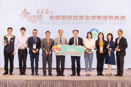 環境部薛富盛部長對於環檢警同仁努力不懈破獲環保犯罪案件、起訴犯罪集團、追回不法所得並將環境復原,所付出的時間與心力公開表揚。今年的個人獎,共有14位,包括桃園地檢署陳寧君檢察官、臺中地檢署林俊杰主任檢察官、彰化地檢署姚玎霖檢察官、臺南地檢署陳鋕銘檢察官、法務部調查局張展鳴調查官及陳榮聰調查專員兼組長、保七總隊楊仲彥及梁育齊警員、彰化縣警察局陳宥任偵查佐、環境管理署周榮光聘用稽查督察員、洪金龍聘用稽查督察員、廖軒斐技正、彰化縣環境保護局梁志鋒技士、高雄市政府環境保護局洪緯廷技士等第一線執法同仁獲頒「打擊環保犯罪傑出貢獻獎」,並分別獲得5千到5萬元不等的獎金,另外「地方打擊環保犯罪卓越團體獎」則分別頒發給桃園市政府環境保護局及新北市政府環境保護局,展現團隊執法成果,象徵了環保犯罪的查緝不只是管末的稽查,可以透過跨局處的合作以及源頭行政管控及預防,展現卓著績效。