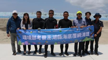 為推動行政院核定之「向海致敬」政策,環境部自110年起補助澎湖縣政府辦理海底覆網清理工作,累計清出約6萬3,000公斤。6日環境部環境管理署顏旭明署長率南區環境管理中心石秉鑫主任及相關同仁視察澎湖縣海底覆網清除並實地潛水現勘,希望透過實際行動為海洋環境盡一份力,並喚起民眾對海洋保育的重視,共同為海洋永續發展努力。