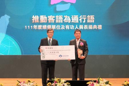 為鼓勵地方政府落實推動客語為通行語,本次大會併同辦理「推動客語為通行語 111 年度績優單位及有功人員」頒獎典禮,合計56個縣、市機關、中央所屬機關及鄉(鎮、市、區)公所獲獎,獎勵金頒發總額超過新臺幣4,000萬元。在直轄市及縣(市)政府部分,苗栗縣政府連續4年獲得「優等」,表現亮眼。本次也首度頒發進步獎及推動客語為通行語有功人員獎,進步獎獲獎的有花蓮縣政府及花蓮縣壽豐鄉公所等7單位,評核成績較往年大幅進步,值得肯定;另有13位主辦推動客語為通行語業務之基層人員也獲得有功人員個人獎。
