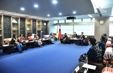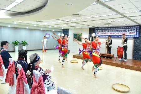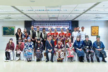 夷將Icyang主委4日接見日本北海道樣似愛努協會熊谷加根女士訪團一行人,安排阿美族樂舞迎賓,也參觀導覽原住民族文物,並與夷將Icyang主委對談。夷將Icyang主委曾於2016及2022年,兩度造訪北海道,參訪愛努民族博物館,今日樣似愛努協會來訪,且穿著傳統服裝,夷將Icyang主委深切感受到協會對於愛努民族文化的認同。