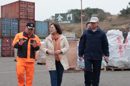 春節期間,海委會為防制非洲豬瘟入侵,主委管碧玲除了要求海巡署加強查緝作業之外,並在週一(1/29)親赴金門,視察小三通安檢作業,並走訪各地海巡隊,叮囑春節期間勤務不放鬆!