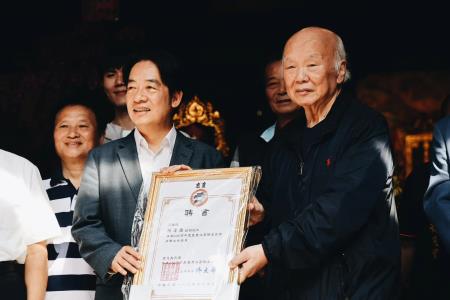 秋祭大典上,賴副總統與客委會周副主委、新竹縣縣長楊文科、義民廟董事長林光華等與會貴賓,一同上香及三獻禮,賴副總統更接下由林光華董事長頒發的褒忠義民廟235周年慶暨慶成圓醮委員會榮譽主任委員聘書。