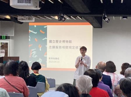為因應史博新氣象,會中也規劃了史博館教育推廣組組長辛治寧,說明新的志工服務辦法及作業要點與進行座談,期盼讓開館後的志工運作和福利能更臻完善。史博館志工夥伴們蓄勢待發迎接開館,在熱鬧的聯誼會中期待從史博68出發,和史博館一齊協力,為社會大眾提供更優質的服務。