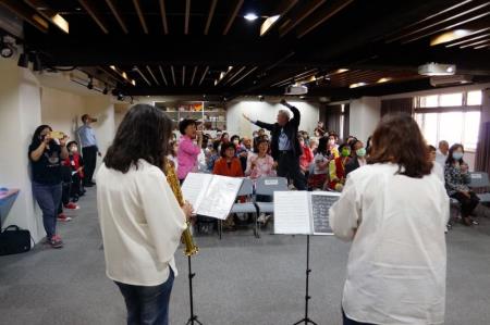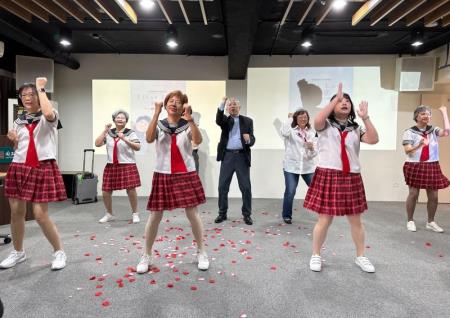 志工夥伴接著在聯歡會上展現才藝,場面熱鬧!開場先由會長劉兆淬及鄧淑鳳以薩克斯風吹奏「感恩的心」與「快樂出帆」,帶領大家齊聲歡唱,呼應期盼開館的雀躍心情;隨後登場的歌舞劇「粗戀」,則是由志工自編自製自演的創意戲碼,擷取韓劇偶像劇的劇情元素,搭配「愛妳」的勁歌熱舞,讓在座的館長梁永斐亦躍入場中跟著舞動起來。值得一提的是,現場的舞蹈都是由志工胡麗金編排,並下場領跳,梁館長特別提及她76歲仍如此身手矯健,讓現場驚呼連連,史博館同仁也回以熱烈掌聲與讚聲。