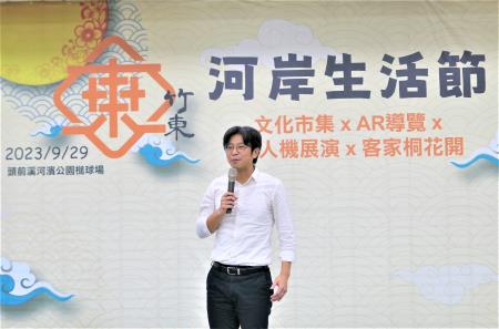 周副主委表示,竹東鎮從過去到現在一直是全台重要的客家鄉鎮,同時不管是耕種或是飲用,客家族群和水的關係都非常密切,因此可以說客家人跟河壩的感情很深。這也是客委會今年跟新竹縣政府和竹東鎮公所共同合作辦理竹東河岸生活節的主要原因。希望可以邀請所有竹東鎮的鄉親還有來自外地的好朋友們,一起親近、認識竹東河岸的美好風光。