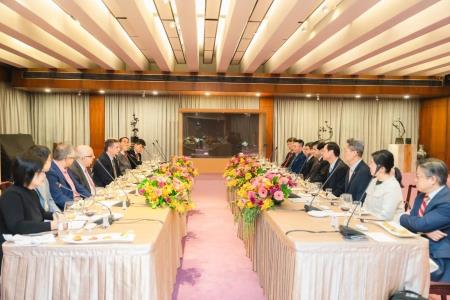外交部常務次長陳立國隨後午宴比亞德部長一行,巴國駐台大使費卡洛(Carlos Fleitas)、衛生福利部中央健康保險署長石崇良等機關代表也應邀出席。席間,雙方論及醫療資訊管理效能提升計畫、台灣—巴拉圭科技大學、協助巴國強化資安及建置5G潔淨網路等兩國間合作計畫進展,有效增進合作關係。