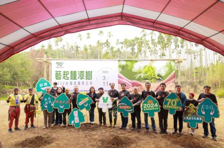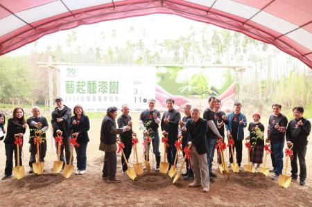 國立臺灣工藝研究發展中心(以下簡稱工藝中心)主辦的臺灣漆復育元年<藝起種漆樹>活動,今(11日)植樹節前夕於漆樹復育基地舉行。由工藝中心陳殿禮主任及漆工藝人間國寶王清霜藝師與黃麗淑藝師等漆藝界同道夥伴們一起種下漆樹,共同開啟臺灣漆復育元年。