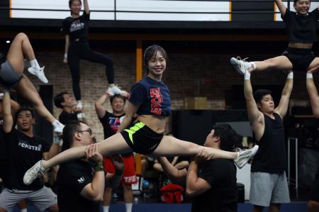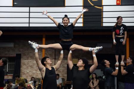 表演團隊成員之一的曾園棠,大一在校園中看到一群人在那裡翻來跳去,一個男生單手就能撐住一個女生站著的畫面覺得超帥,曾園棠就這樣的進入了啦啦隊的世界。雖然一路上跌跌撞撞,卻甘之如飴,近十年來參賽、表演,在這個領域中找到自己人生的意義與價值。