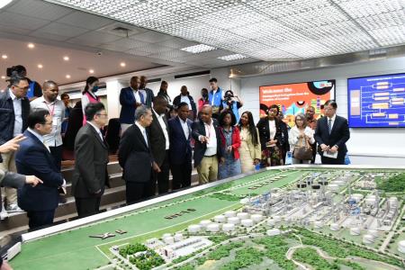 在經濟部與外交部安排下,111年10月史瓦帝尼國王恩史瓦帝三世及112年3月前總理戴克里等代表團兩度參訪桃園煉油廠,這次是第三度接待史國貴賓。該廠於66年4月投產,擔負台灣中、北部汽、柴油供應之重任,煉油廠區包含各類型煉製工場與設備、電力與蒸氣等公用設備,以及完善的汽、柴油成品自動化灌裝設施,透過此次參訪,讓史國代表團更了解我國能源相關業務運作狀況。