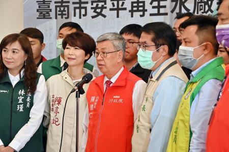 行政院長陳建仁8日前往臺南市視察安平再生水廠新建工程時表示,為應氣候變遷帶來的缺水問題,政府超前部署,透過前瞻基礎建設,完善全臺供水系統與水源調度,以度過百年大旱的嚴峻考驗。而安平再生水廠運用科技將污水淨化成高品質的再生水,供應臺南科學園區高科技產業使用,減低南部地區產業供水壓力,後續也請相關單位持續透過「多省水、多找水、多調水」方式,有效管控用水、努力開發水源,進一步實現環境永續發展與綠色經濟的目標。