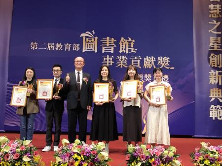 五、傑出圖書館館員獎(5名):國立成功大學圖書館周志文秘書運用專精英語轉譯圖資專業深入教學研究,並積極參與專題演講與各項會議,與同道分享展現專業形象;高雄市立圖書館蔡玉庭企劃專員結合個人藝術創作與策展經歷,深耕繪本推廣與推動臺灣原創繪本人才培育計畫,扶植本土繪本創作者成長並走向國際;臺北市立第一女子高級中學蔡蕙宇幹事開啟圖資與教育的跨界實驗,引導策劃主題書展培養學生資訊素養,並指導學生建立IG與Podcast頻道;臺北市立古亭國民中學劉惠萍管理員以當「圖書館裡的太陽」為職志,勇於嘗試各種創新多元策略,讓閱讀充滿趣味;國立臺灣圖書館闕詩穎研究助理長期致力推動弱勢者閱讀服務,建立多項特教資源並與醫療院所合作服務特殊兒童,為拓展身心障礙者資訊平權倡議貢獻己力。