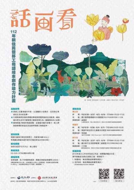 文化部所屬國立新竹生活美學館主辦「話畫看~112年新住民暨移工母語繪本創作培力計畫」將辦理5個週末共30小時的免費繪本培力工作坊,引導學員以自身經驗創作母語繪本,本次共開設3班,5月20日至7月2日在雙北、桃園及新竹地區分別開班授課。為鼓勵學員堅持創作,每位參與工作坊並完成作品的學員都能參加繪本甄選,特優作品更能獲得新臺幣3萬元獎勵。自即日起至5月6日開放網路報名,歡迎年滿18歲新住民、移工夥伴及新二代青年共同參加!
