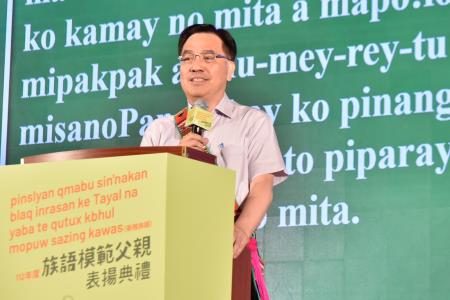 夷將Icyang主委以阿美語致詞表示,父親是家庭中傳承族語重要的角色,未來也會持續在每年的父親節辦理族語模範父親表揚,期盼透過獎勵將族語傳習給下一代的父親,讓族語在更多的家庭被使用及傳承。